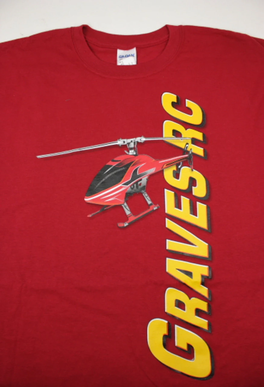 GRAVES RC HOBBIES Helicopter T-Shirt, Red, Small