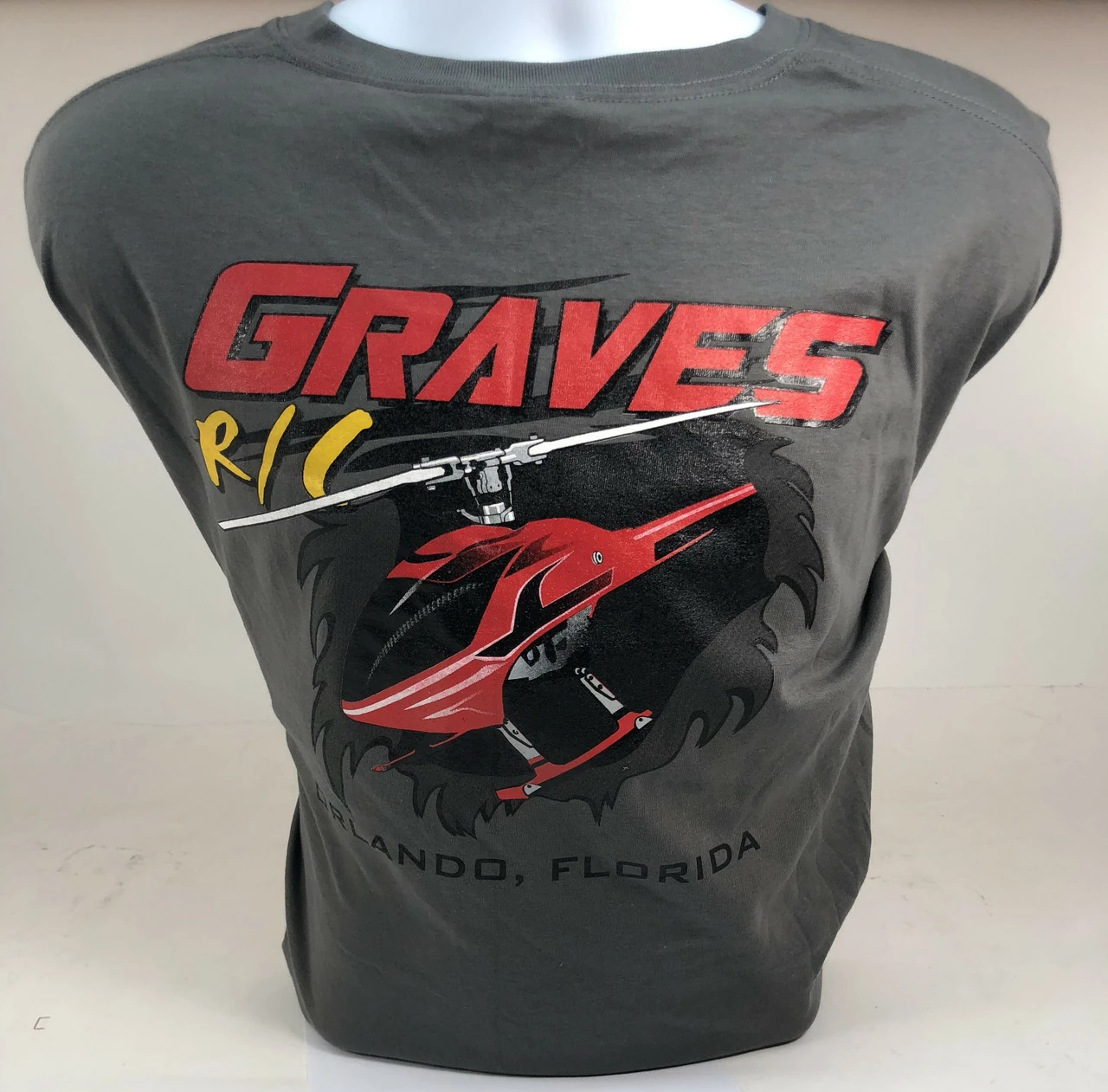 GVSHTEEGR-L Graves RC Hobbies Helicopter T-Shirt, Grey, Large