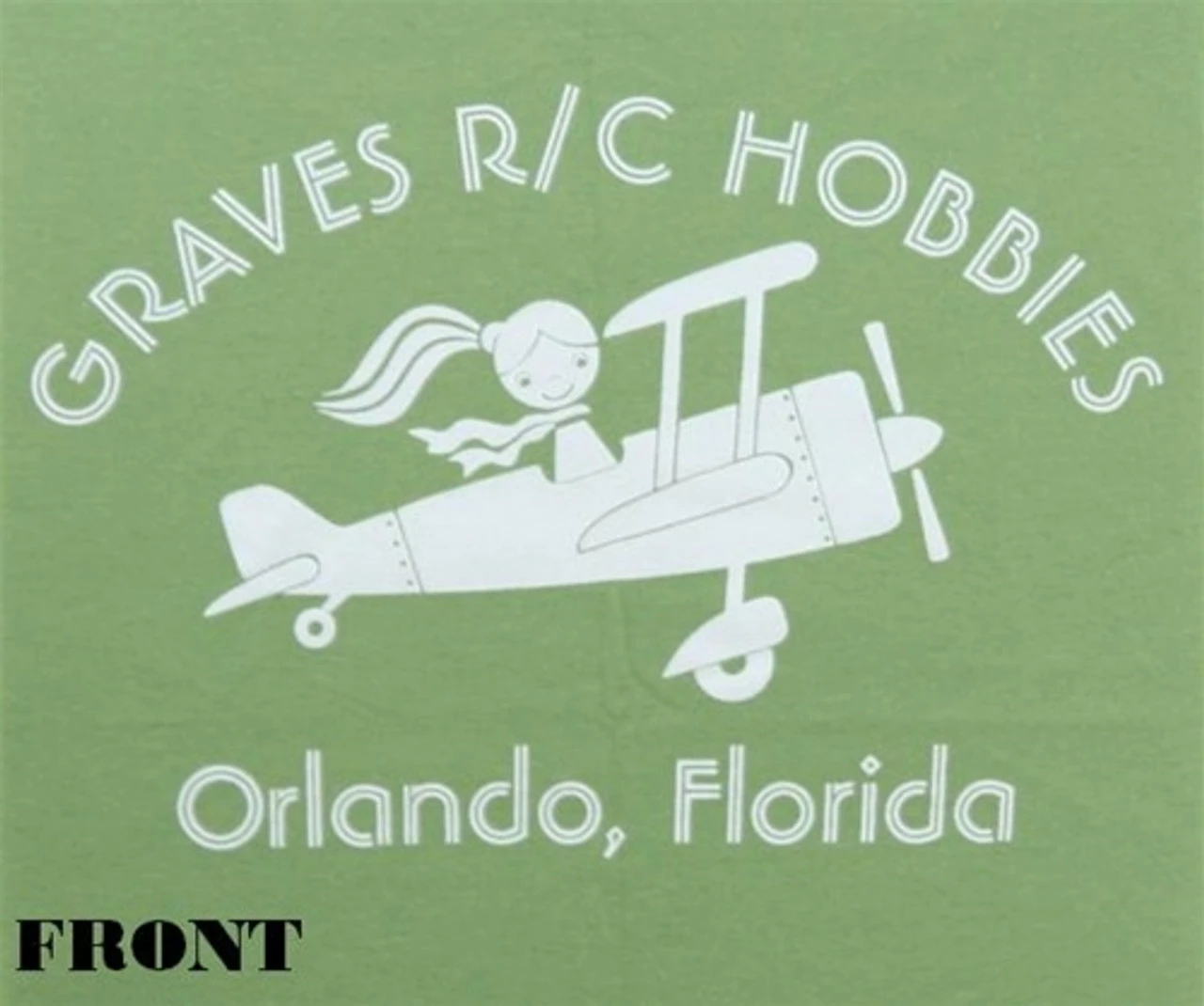 GRAVES RC HOBBIES LADIES AIRPLANE T-SHIRT, GREEN, LARGE