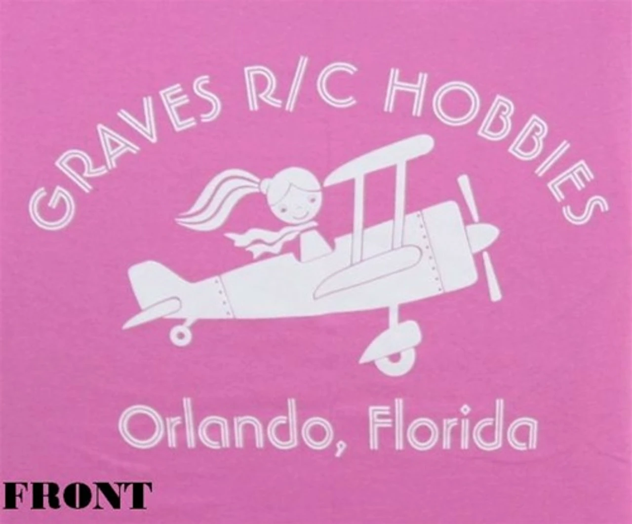 GRAVES RC HOBBIES LADIES AIRPLANE T-SHIRT, PINK, MEDIUM