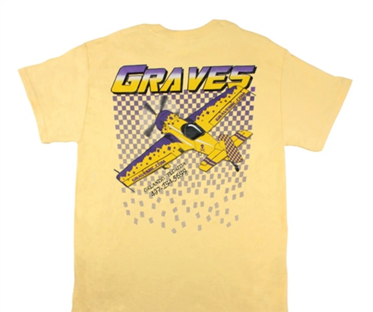 GRAVES RC HOBBIES AIRPLANE T-SHIRT, YELLOW, SMALL