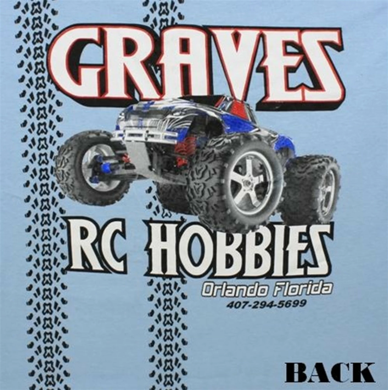 GRAVES RC HOBBIES CAR T-SHIRT, LIGHT BLUE, XL