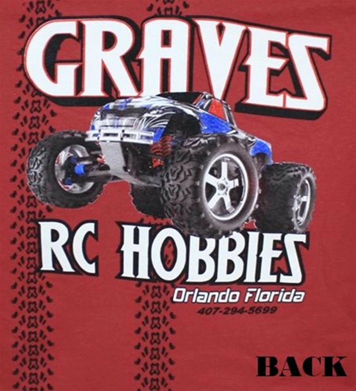 GRAVES RC HOBBIES CAR T-SHIRT, WINE, LARGE