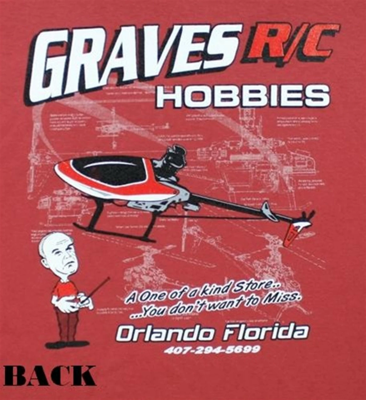 GRAVES RC HOBBIES HELI T-SHIRT, WINE, MEDIUM