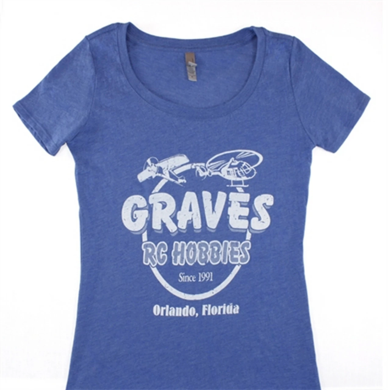 GRAVES RC HOBBIES WOMENS RETRO T-SHIRT, LIGHT BLUE, MEDIUM